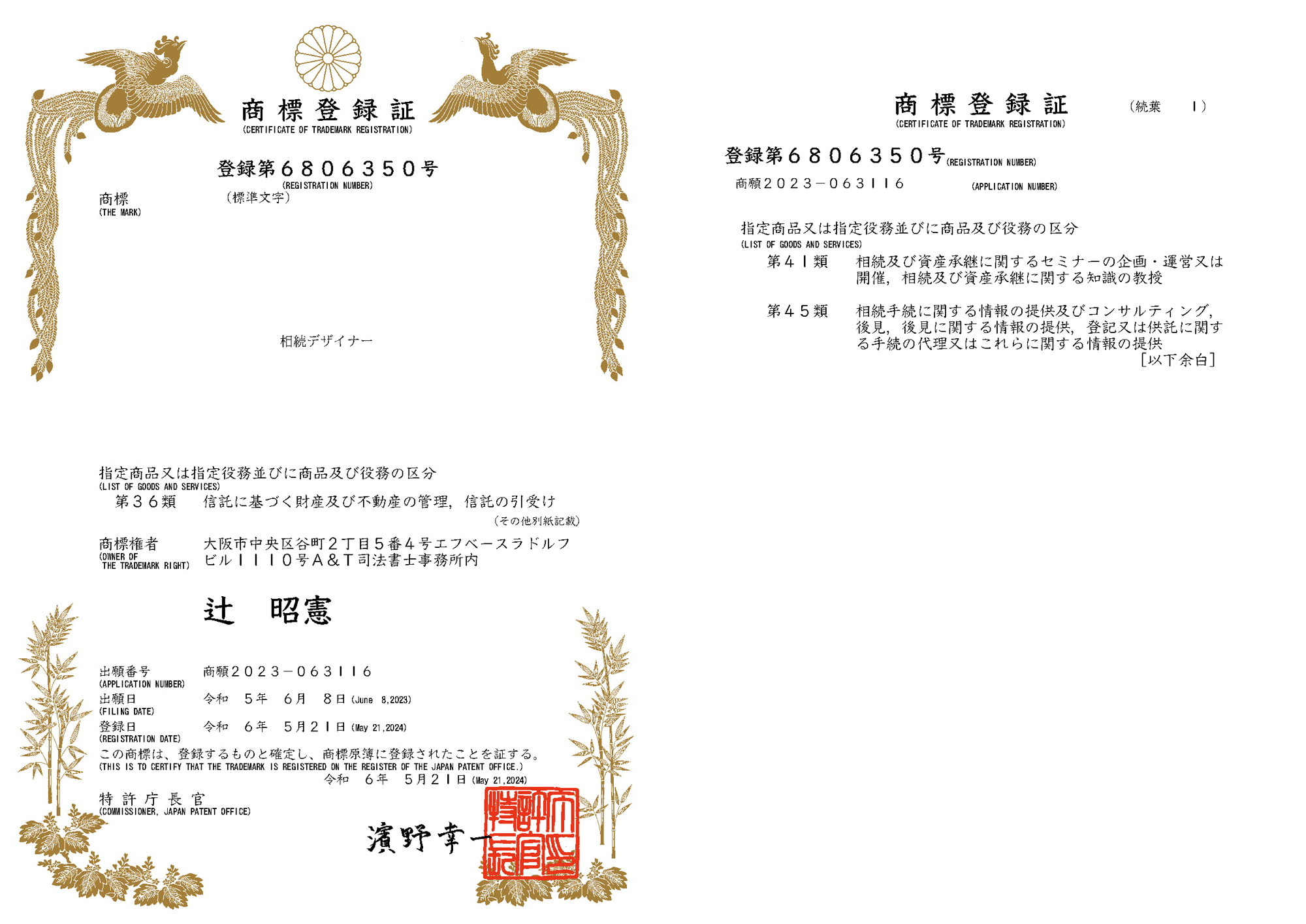 「相続デザイナー」はA&T司法書士事務所 辻 昭憲の登録商標です。
