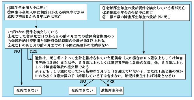 遺族年金とは、被保険者が亡くなったときに残された遺族に対して支給される公的年金のことで、被保険者が国民年金に加入していた場合の遺族基礎年金と、厚生年金に加入していた場合の遺族厚生年金に大別されます。受給に際しては一定の条件を満たしている必要があります。